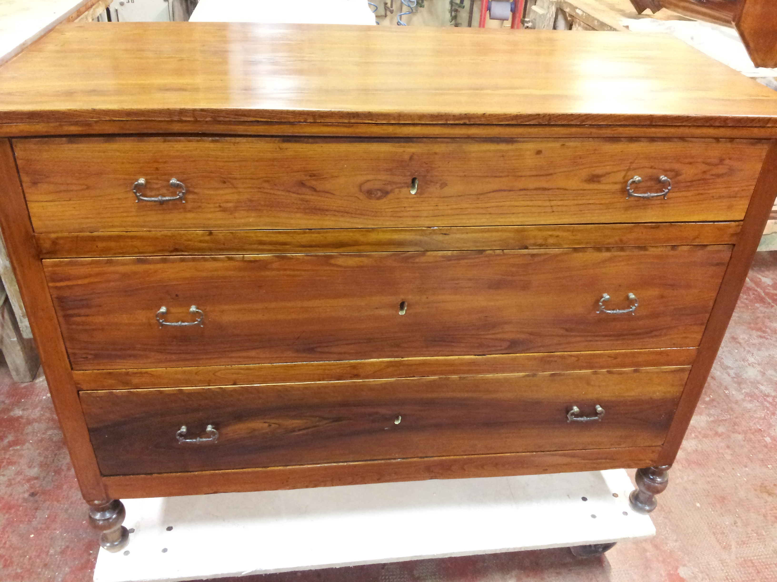 Questo è il classico restauro con vari interventi di falegnameria oltre che di lucidatura. Questo tipo di restauri mette alla luce tutte le abilità artigianali che deve avere un restauratore, cioè la falegnameria oltre che la lucidatura.