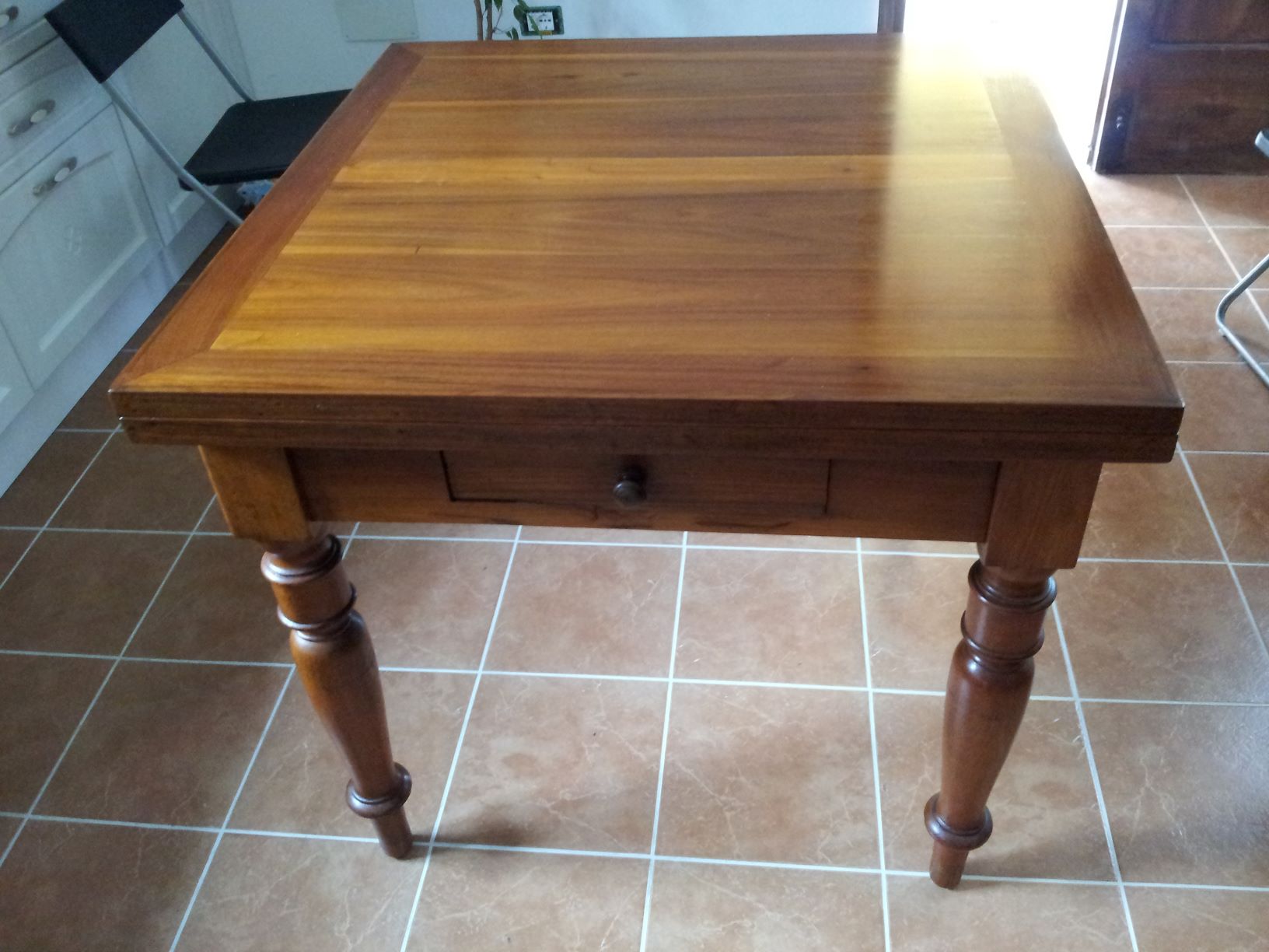 Negli anni 50-60 era moda incollare un piano di formica sulle tavole tedesche per “abbinarle” all’arredamento della nuova cucina e per renderle più “funzionali”. In questo restauro abbiamo riportato il piano della tavola ai fasti di un tempo…