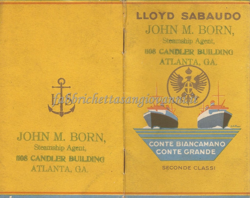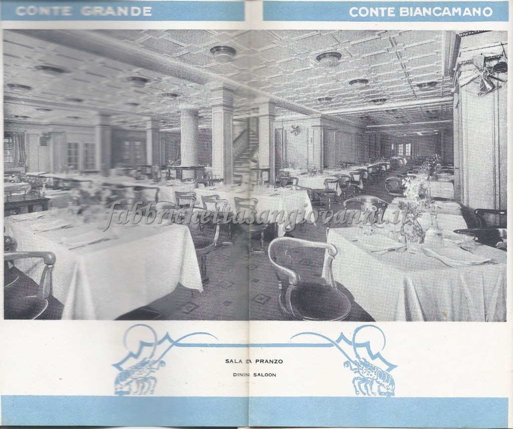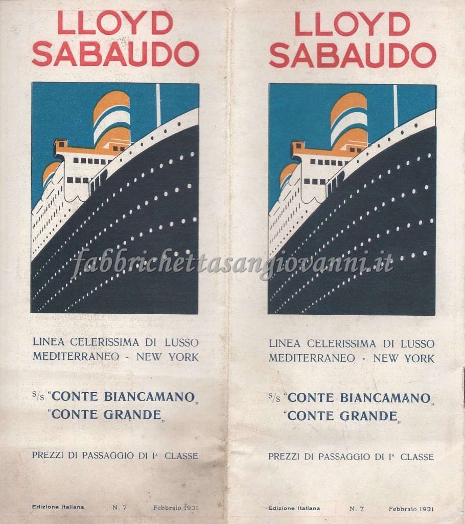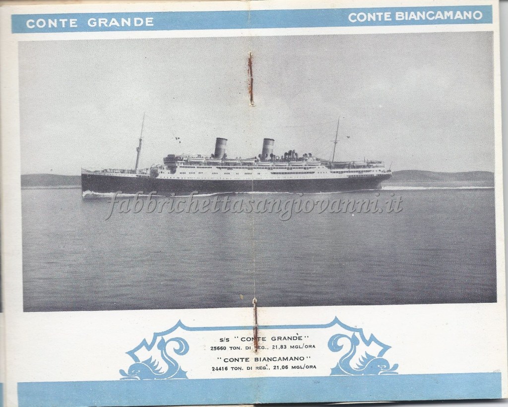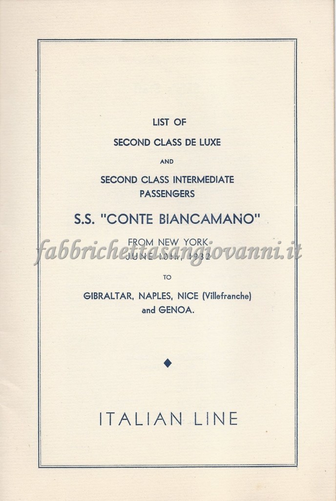 Nel giugno del 1932 il nostro concittadino Domenico intraprese il viaggio di ritorno verso l’Italia, da New York a Genova, dopo aver passato un periodo negli Stati Uniti probabilmente nella città di Atlanta. Il viaggio fu sul Transatlantico “Conte Biancamano” e sicuramente fu emozionante, avvincente ma anche rilassante, visti gli agi che la nave offriva. Scopriamo insieme qualche documento di quel viaggio, che si è conservato fino ai giorni nostri…