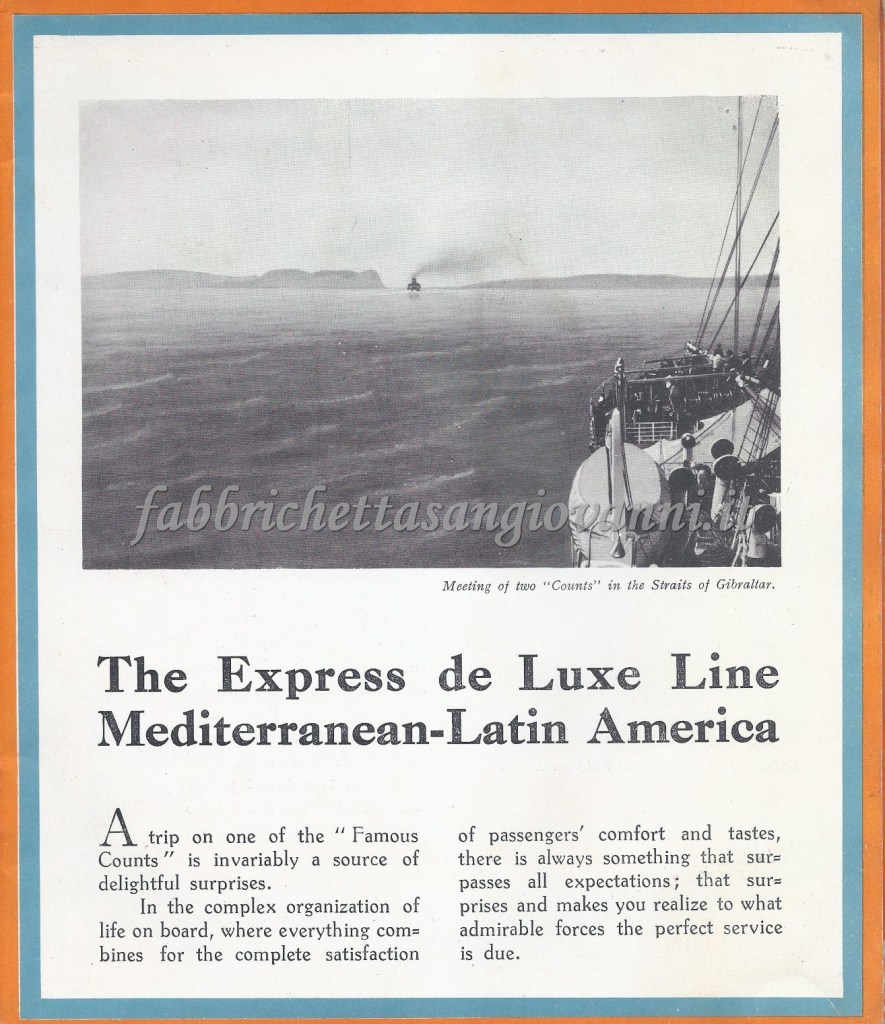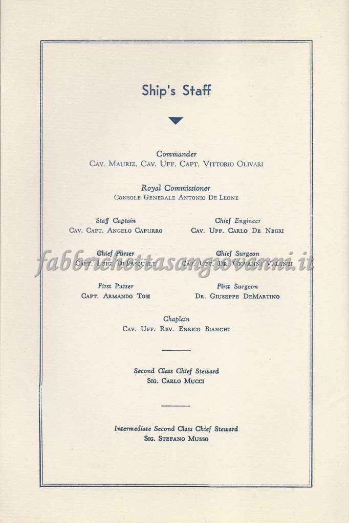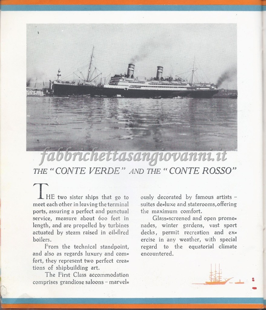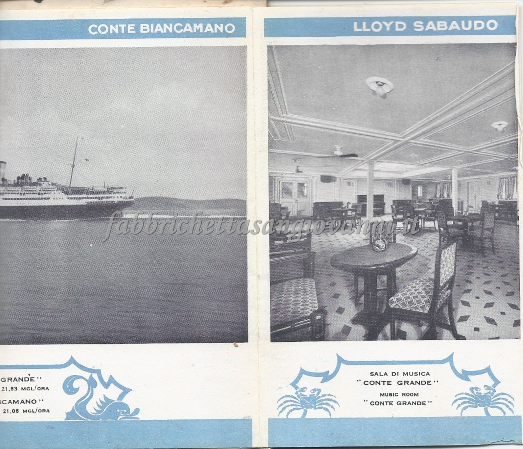 Nel giugno del 1932 il nostro concittadino Domenico intraprese il viaggio di ritorno verso l’Italia, da New York a Genova, dopo aver passato un periodo negli Stati Uniti probabilmente nella città di Atlanta. Il viaggio fu sul Transatlantico “Conte Biancamano” e sicuramente fu emozionante, avvincente ma anche rilassante, visti gli agi che la nave offriva. Scopriamo insieme qualche documento di quel viaggio, che si è conservato fino ai giorni nostri…