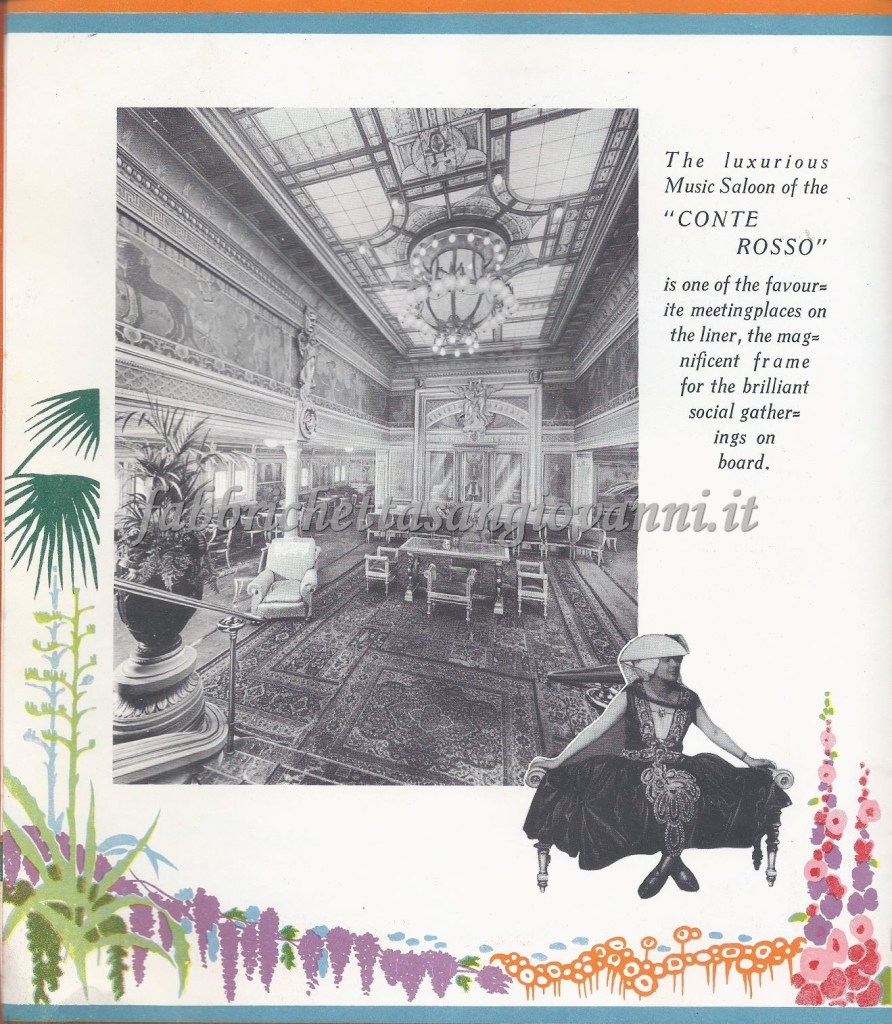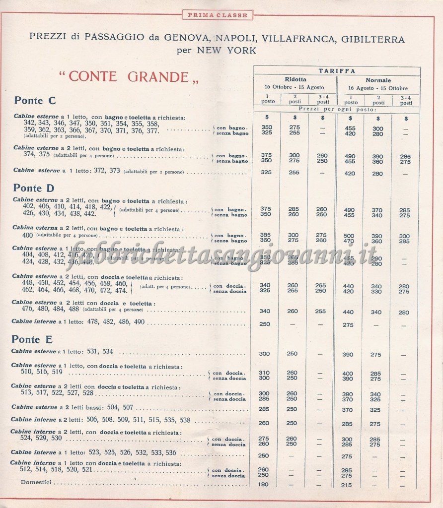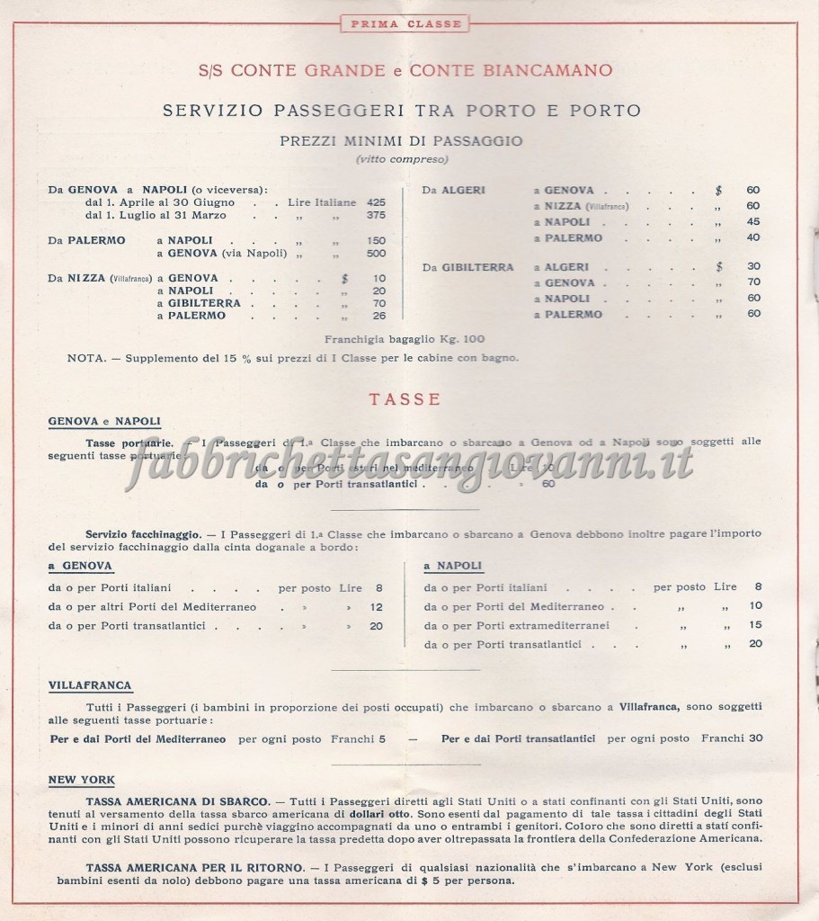 Depliant con i prezzi e le informazioni di viaggio della prima classe. Successivamente, forse per ragioni economiche, scelse la seconda classe.