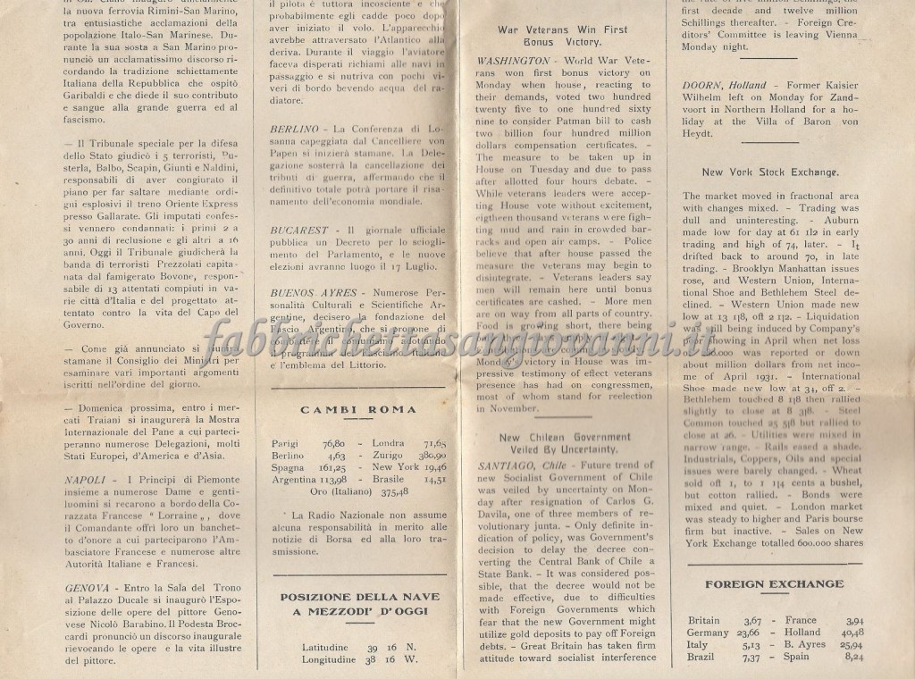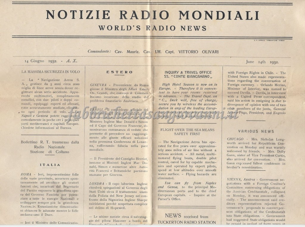 Notiziario stampato a bordo del 14 giugno 1932