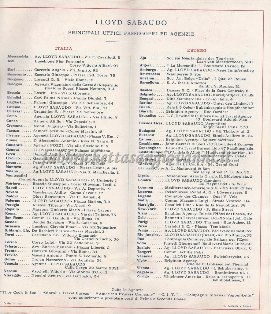 Depliant della società di navigazione genovese “Lloyd Sabaudo”