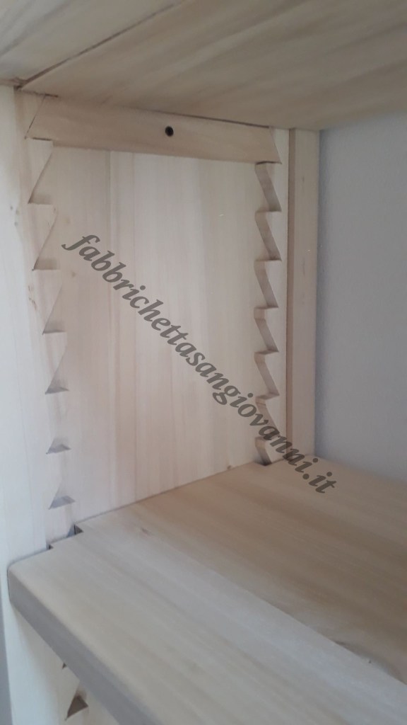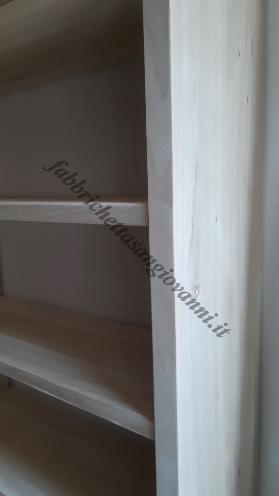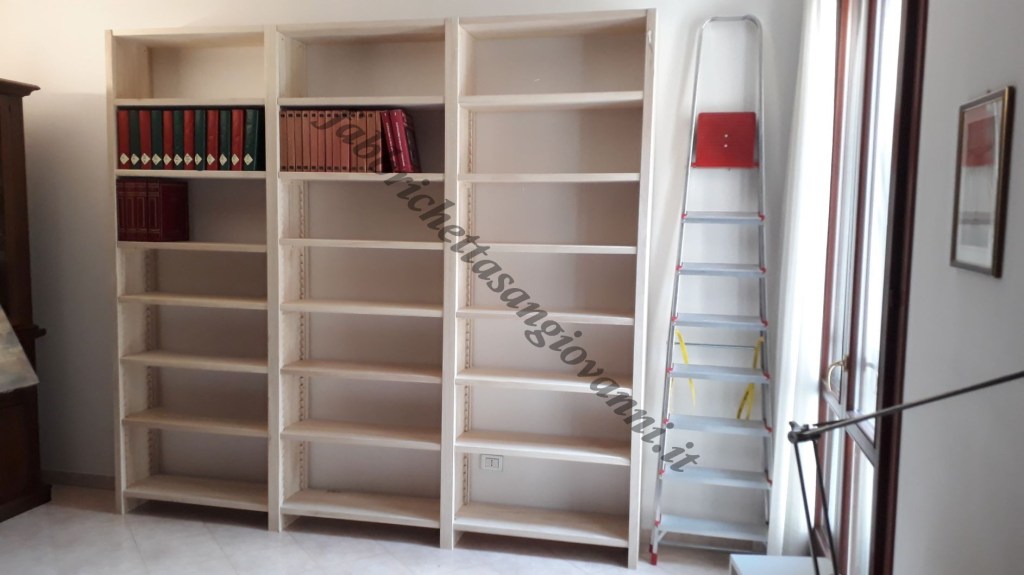 In questo lavoro è stata progettata, costruita e messa a dimora una libreria in pioppo massello. Non è stata eseguita nessuna verniciatura perchè il cliente ha voluto lasciarla al naturale. I ripiani sono regolabili grazie alla presenza della scaletta laterale.